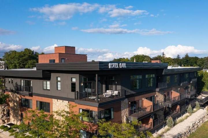 Originally designed by Earl Young this boutique hotel as been renovated with a mid-century modern flair and unique details inspired by its original architect.